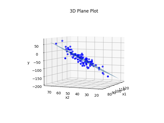 The right answer will be something like y = -4 + 2x1 - 3x2 + 4x3, but not exactly.