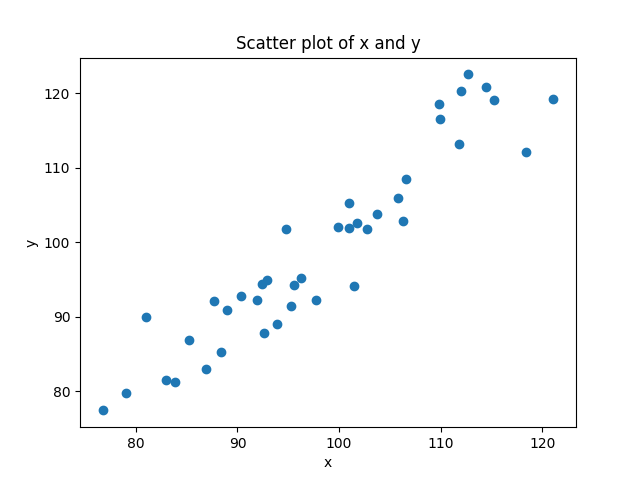 print(m)Why does that make sense as the slope? Think of it this way. The slope is a measurement of how much y changes with regard to changes in x. In our new equation, our covariance is really the same idea, how much x and y change together. The division is then just scaling that number in units of x, which is what we want, how many units does y change for each unit of x.