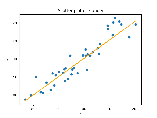 print(b)With this dataset, I get a value of -4.91. So again, our value is not the exact value of 0 that goes with y=x, but it is very close.